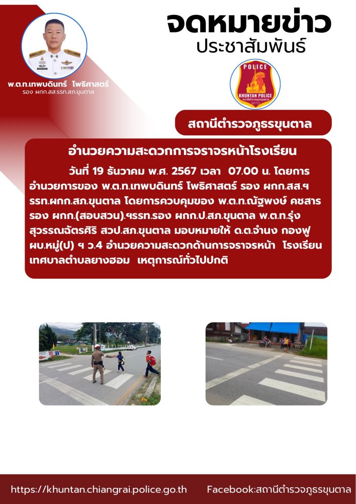 อำนวยความสะดวกด้านการจราจรหน้าโรงเรียน 19 ธันวาคม 2567 โดย admin / ข่าวประชาสัมพันธ์,งานจราจร ธ.ค.67 จำนวนคนดู: 21 FacebookFacebookXXLINELine
