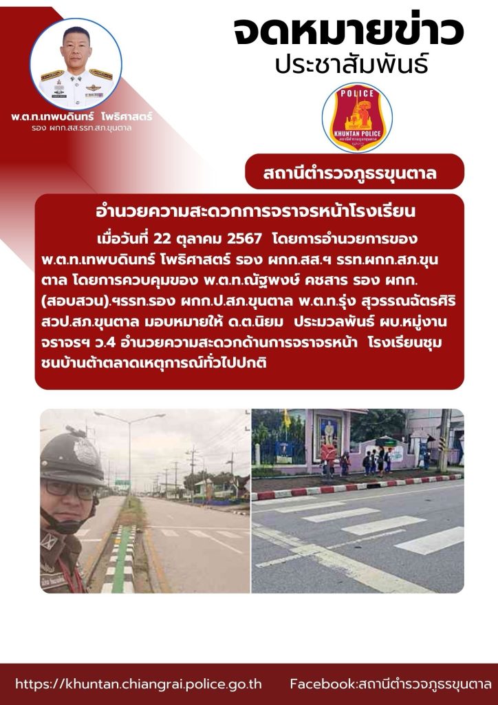 อำนวยความสะดวกด้านการจราจรหน้าโรงเรียน 22 ตุลาคม 2567 โดย admin / งานจราจร ต.ค. 67 จำนวนคนดู: 30 FacebookFacebookXXLINELine