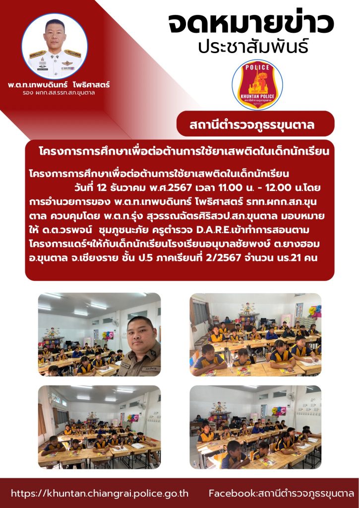 • ใหม่กว่า → โครงการการศึกษาเพื่อต่อต้านการใช้ยาเสพติดในเด็กนักเรียน
