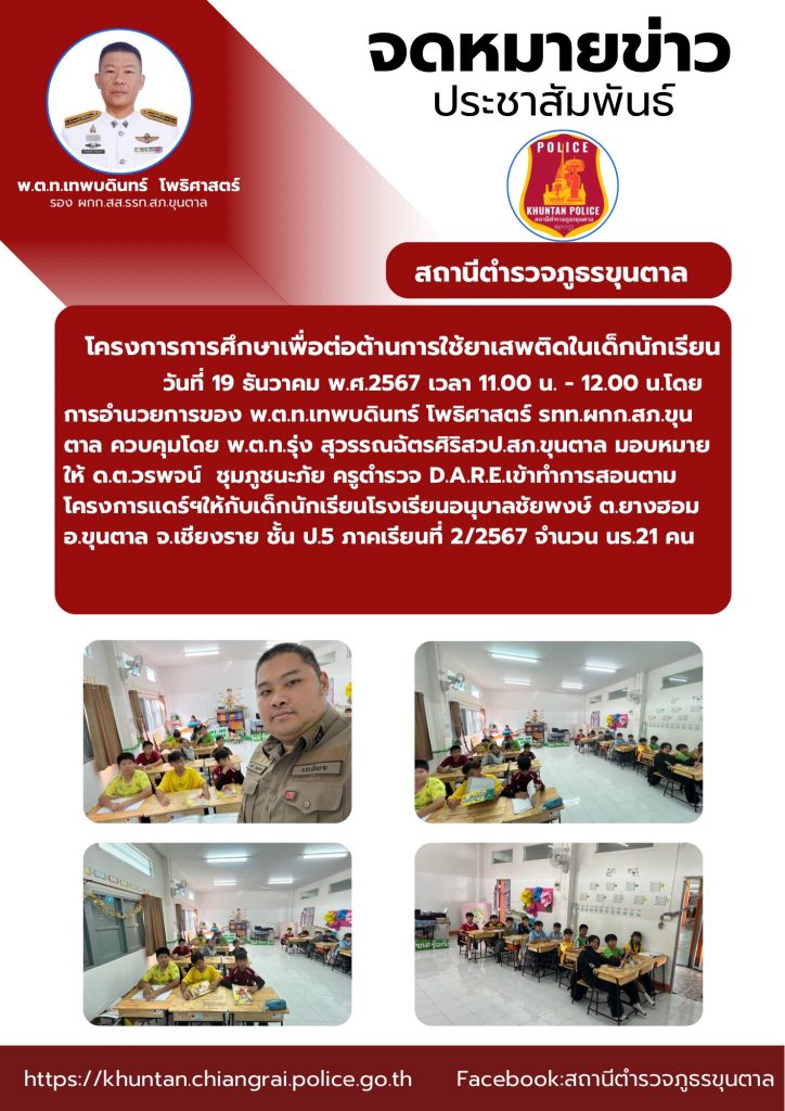 • ใหม่กว่า → โครงการการศึกษาเพื่อต่อต้านการใช้ยาเสพติดในเด็กนักเรียน