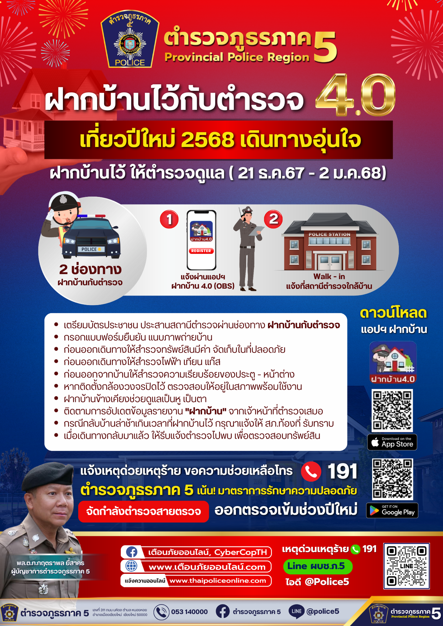 👮♂️ “ตำรวจภูธรภาค 5” ออกมาตรการเข้มดูแลชีวิตและทรัพย์สินของพี่น้องประชาชน ช่วงเทศกาลปีใ