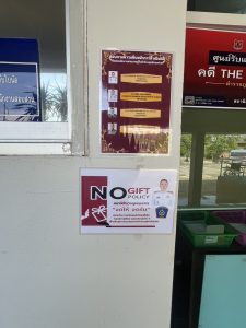 ติดไว้ในจุด บริการของสถานี เพื่อให้ประชาชนทราบว่า หน่วยงานประกาศว่าเจ้าหน้าที่ทุกคนในสังกัดไม่รับของขวัญหรือของกำนัลจากการปฏิบัติหน้าที่ และต่อต้านการรับสินบน โดย มี พ.ต.อ.สุทธิพงศ์ จงวัฒนา ผกก.สภ.ขุนตาล หัวหน้าหน่วยงานประกาศ