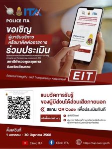 ชี้แจงและให้ข้อมูลเกี่ยวกับการประเมินคุณธรรมและความโปร่งใสในการดำเนินงานของหน่วยงานภาครัฐ (Integrity and Transparency Assessment: ITA) ของสถานีตำรวจ ประจำปีงบประมาณ พ.ศ. 2567 แก่เจ้าหน้าที่ตำรวจในหน่วยงาน